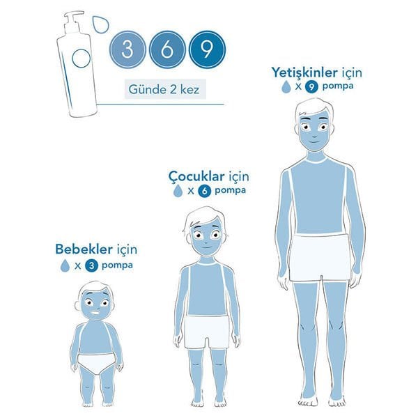 Bir çocuk için 6 pompa gereklidir. (1 pompa baş boyun bölgesine, 1 pompa göğsün ön bölgesine, 1 pompa kollara, 1 pompa sırt bölgesine, 1’er pompa bacaklara uygulanmalıdır.)