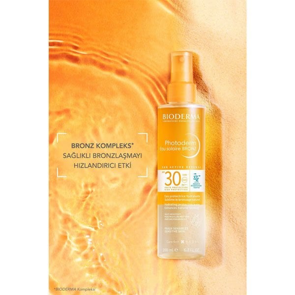 Bioderma Photoderm Bronz Sprey, hem yüksek güneş koruması hem de doğal bronzlaşma sürecini destekleyebilecek şekilde formüle edilmiş bir güneş koruyucu spreydir.