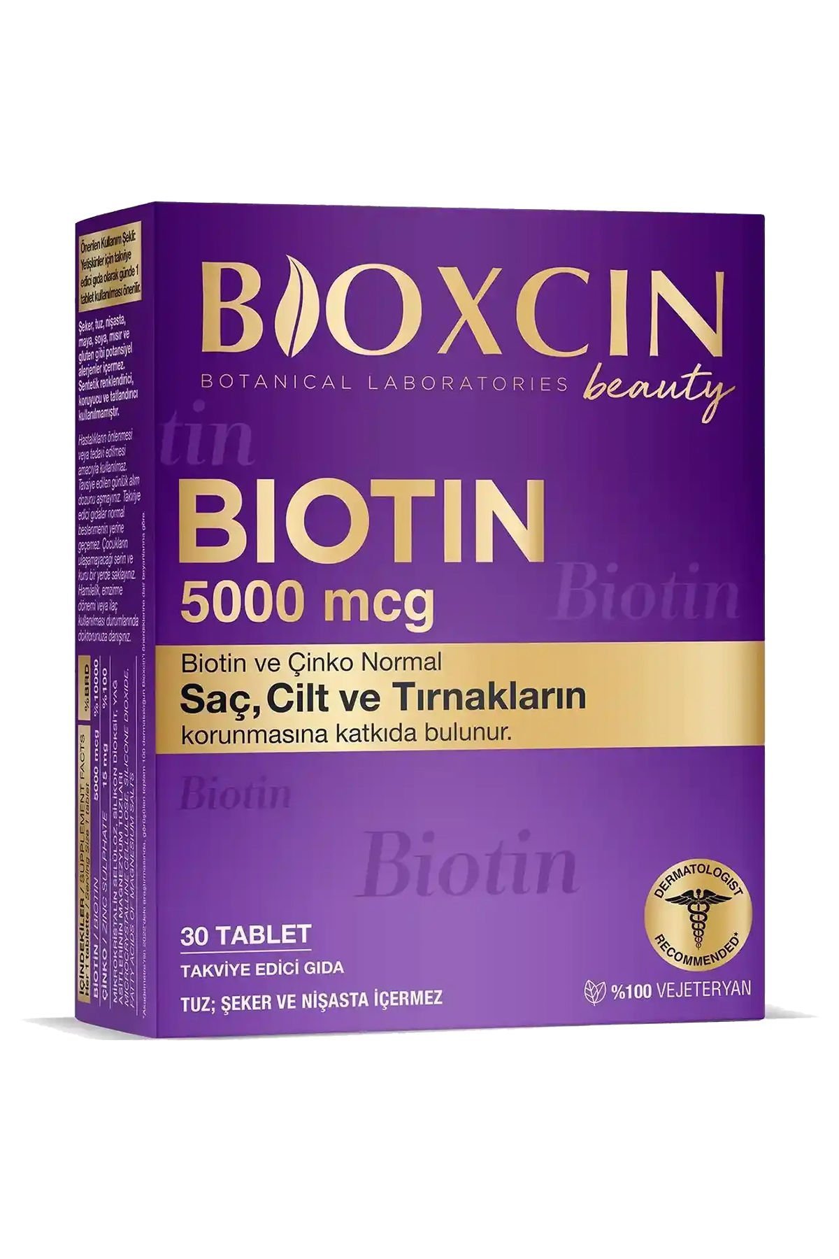 Bioxcin Biotin 5000 mcg Takviye Edici Gıda, her bir tabletinde 5000 mcg biyotin ve 15 mg Çinko(sülfat) içeriği sunar. İçeriğinde katkı maddesi veya yapay renklendirici bulunmaz