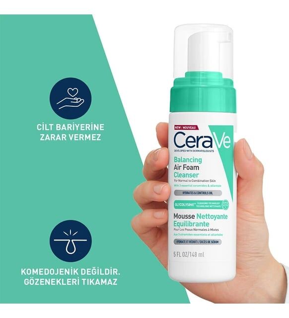 Normalden karmaya dönük ciltler içn cildi kir,yağ ve makyajdan arındıran özel temizleyici köpük