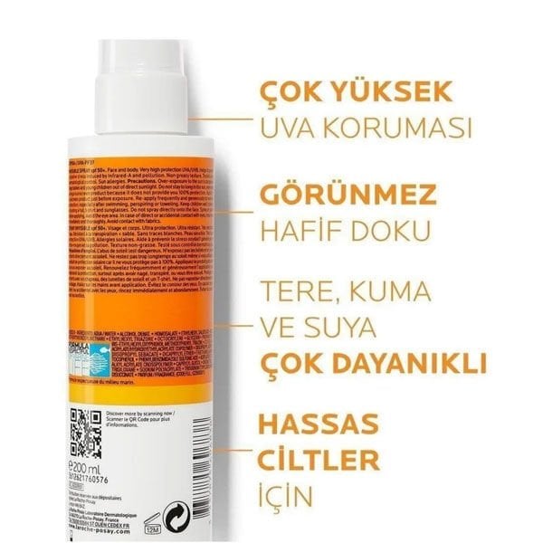 - La Roche Posay Anthelios XL SPF 50+ Ultra Light Transparent Spray 200 ml Ürününü kullanmadan önce iyice çalkalayınız.