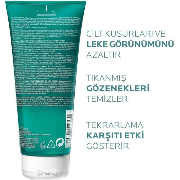 La Roche Posay Effaclar Mikro Peeling Jel Vücut 200 ml İçeriği?