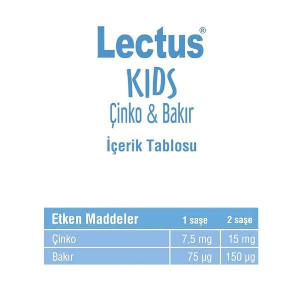Lectus Kids Çinko Bakır Tavsiye Edilen Günlük Alım Dozu: