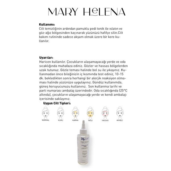 Mary Helena Tonik, cildinizi derinlemesine temizleyip dengeleyen, cilt tonunu eşitleyen ve tazeleyen bir toniktir.