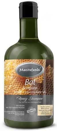 MECİTEFENDİ BAL ŞAMPUANI BAL ÖZÜ ve BUĞDAY PROTEİNİ içermektedir.Yeteri miktarda MECİTEFENDİ BAL ŞAMPUANINI, su ile ıslattığınız saçlarınıza yumuşak hareketlerle tatbik ediniz.Banyoda 2 ya da 3 kez uygulama yapılabilir.