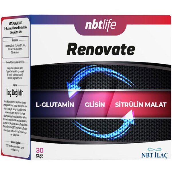 NBT Life Renovate, içeriğindeki L-Glutamin, Glisin ve Sitrülin Malat ile bağırsak sağlığını ve enerji seviyelerini destekler. Özellikle diyet dönemlerinde enerji eksikliğini gidermeye yardımcı olur. :contentReference[oaicite:5]{index=5}