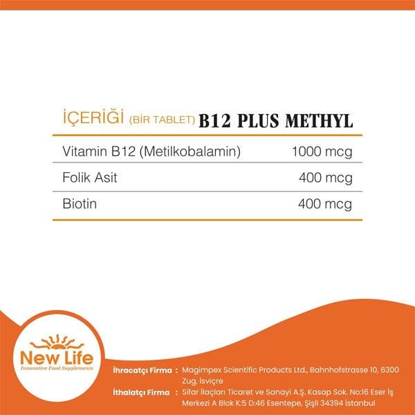 New Life B12 Plus Methyl dil altı tablet formundadır.