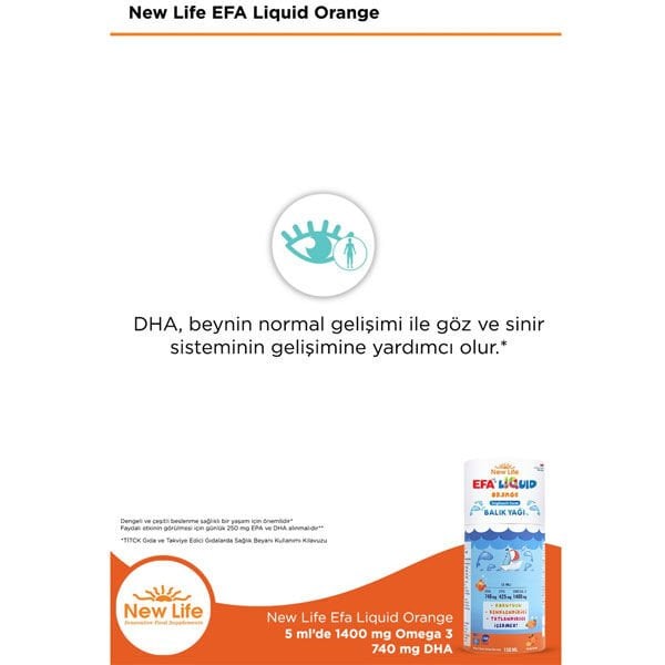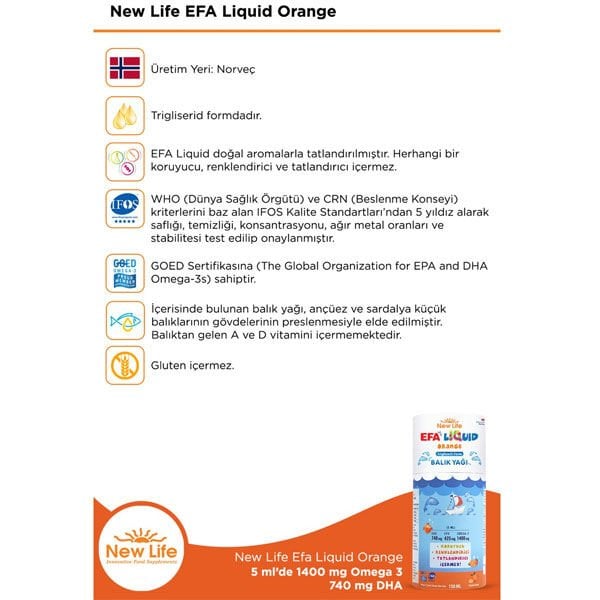 New Life EFA Liquid 150 ml Balık Yağı Şurubu Portakal Aromalı