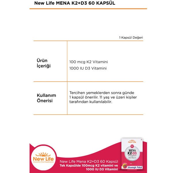 New Life Mena D3K2 Vitamin 60 Kapsül