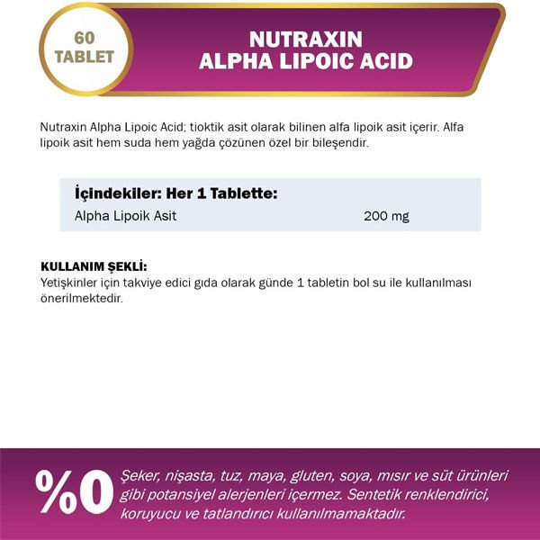 Nutraxin Alpha Lipoic Acid 200mg 60 Tablet Nedir?