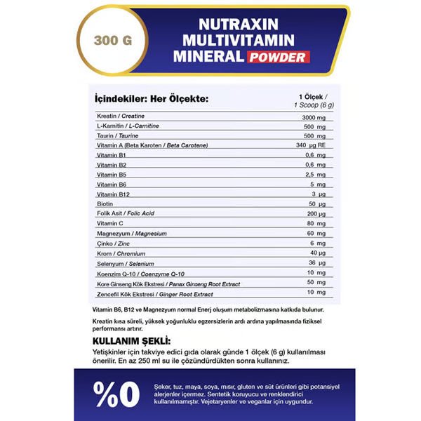 Nutraxin Multivitamin Mineral Powder 300 gr
