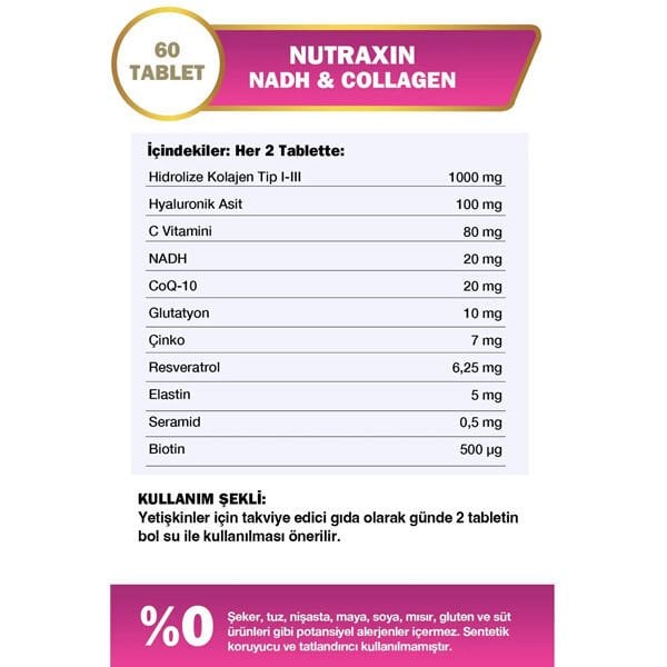 Nutraxin Nadh Collagen Collagen Takviye Edici Gıda 60 Tablet