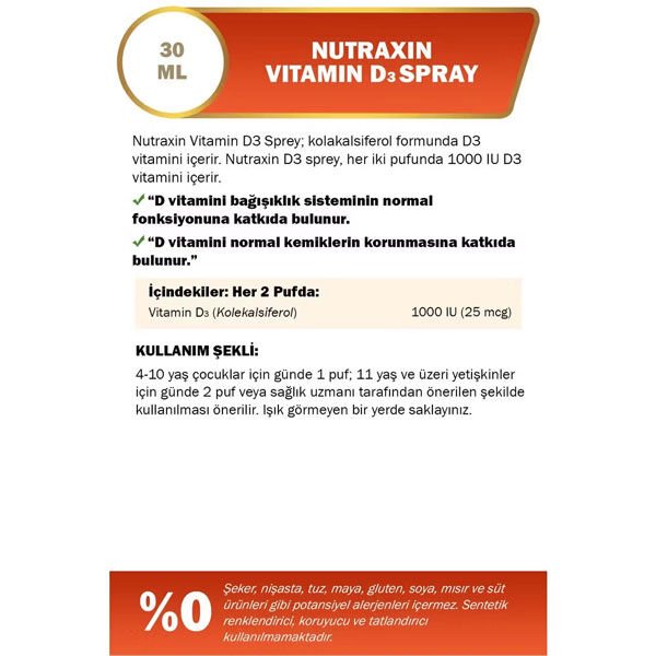 Nutraxin Vitamin D3 Sprey 30ml İçeriği