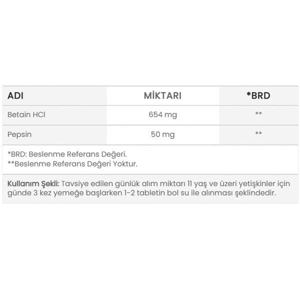 - Betain HCl: Mide asidini desteklemeye ve sindirimi kolaylaştırmaya yardımcı olabilir.