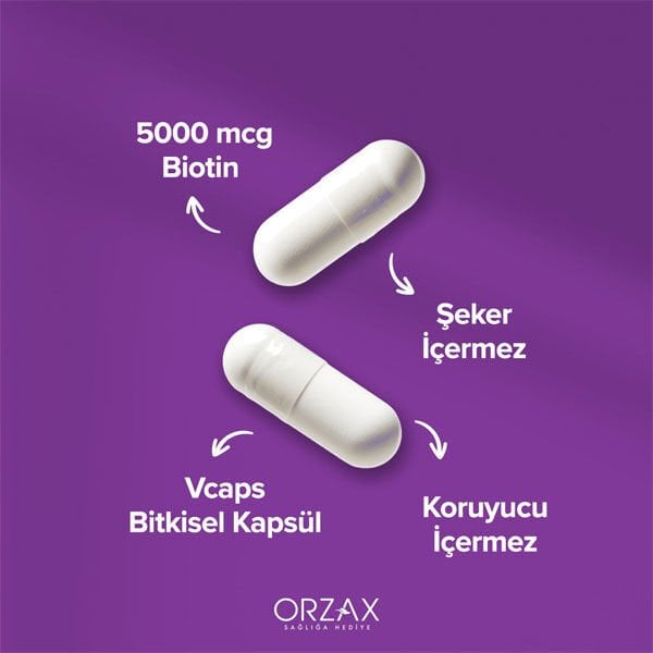 Ocean Biotin 5000 Mcg, her kapsülünde 5000 mcg biotin içerir ve Vcaps bitkisel kapsüllerdedir.