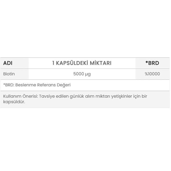 Ocean Biotin 5000 Mcg Kullanım Önerisi:Tavsiye edilen günlük alım miktarı yetişkinler için bir kapsüldür