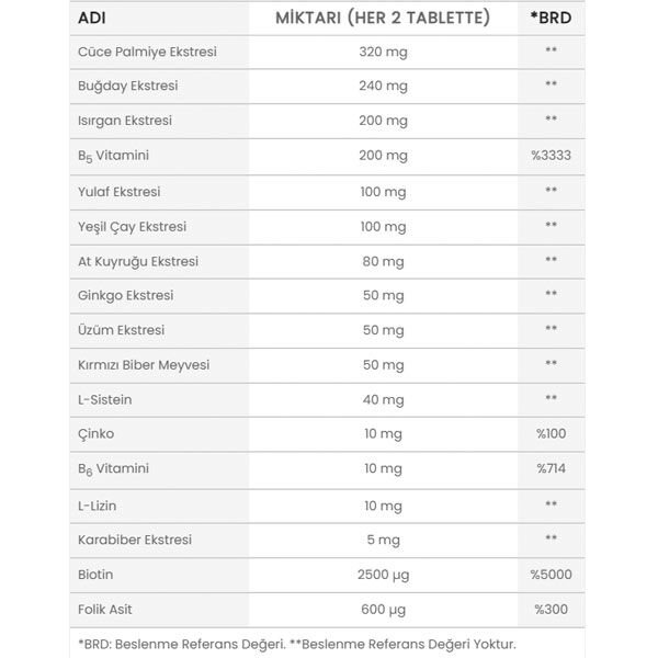 Bitkisel ekstreler, vitaminler ve minerallerle geliştirilmiş bir formüldür.