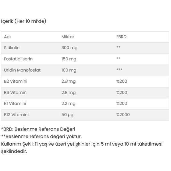 Kullanım Şekli: 11 yaş ve üzeri yetişkinler için 5 ml veya 10 ml tüketilmesi şeklindedir.