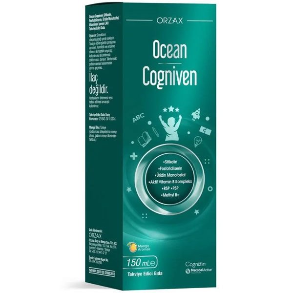 Ocean Cogniven Likit; sitikolin, üridin monofosfat, fosfotidilserin (PS) içeren, B1, B2, B6, B12 vitaminleriyle zenginleştirilmiş bir gıda takviyesidir.