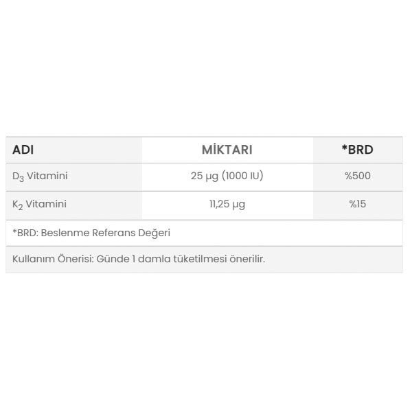 Kullanım Önerisi: Günde 1 damla tüketilmesi önerilir.