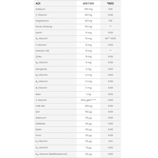 Kullanım Önerisi: Günde 1 tablet tüketilmesi önerilir.