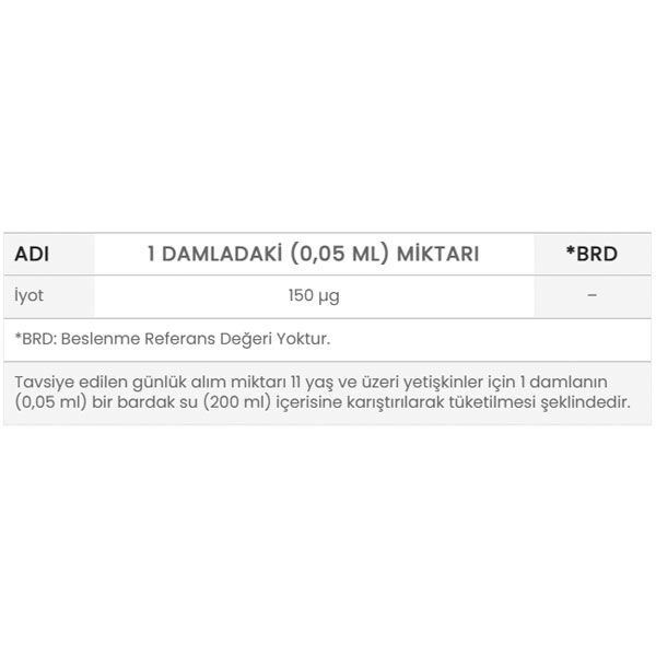 Ocean Iodine Damla, her bir damlasında 150 mcg iyot içeren, damla formda gıda takviyesidir.