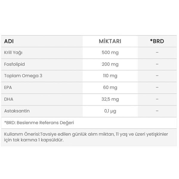 Ocean Krill Oil Yağı 30 Kapsül İçeriği