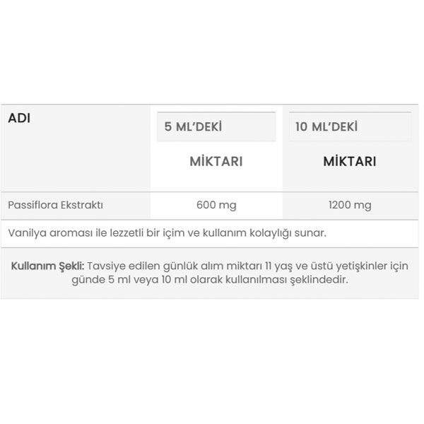 Ocean Passiflora İncarnata Şurup, her 5 ml’de 600 mg Passiflora ekstresi içeren bir gıda takviyesidir.