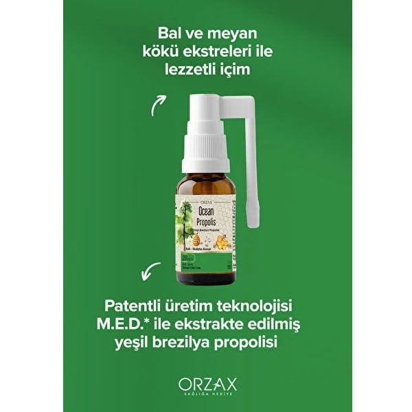 Ocean Propolis, patentli üretim teknolojisi M.E.D.* ile ekstrakte edilmiş yeşil Brezilya propolisi içeren gıda takviyesidir.
