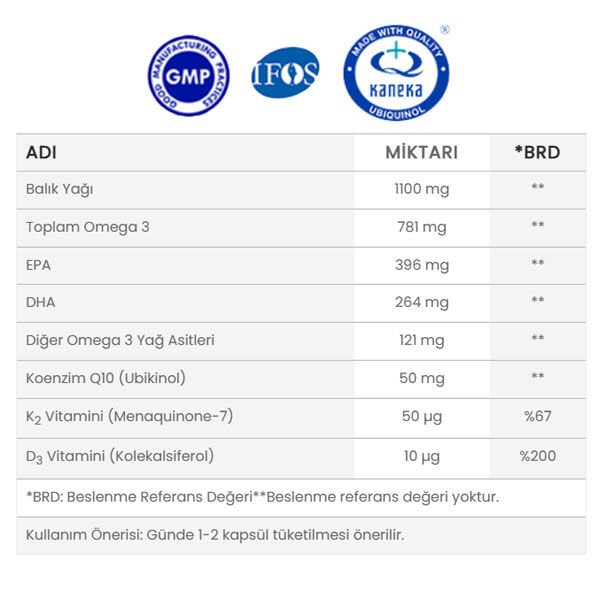 - Günlük olarak 1 kapsül, tercihen öğünlerle birlikte alınabilir.