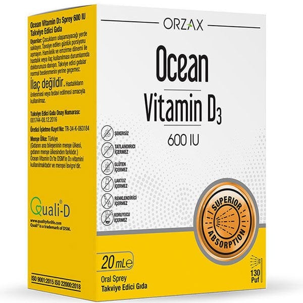 Ocean Vitamin D3 ürünlerinde koruyucu katkı maddesi, renklendirici, tatlandırıcı, yapay aroma verici ve ilave şeker içermez.