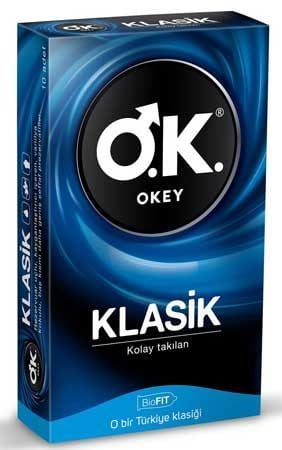 Okey Klasik, klasikten vazgeçemeyenler için üretilmiş standart prezervatiftir. Rezervuar uçludur, kayganlaştırıcı krem içerir ve şeffaftır. Doğal Latex kauçuğundan üretilmiştir.