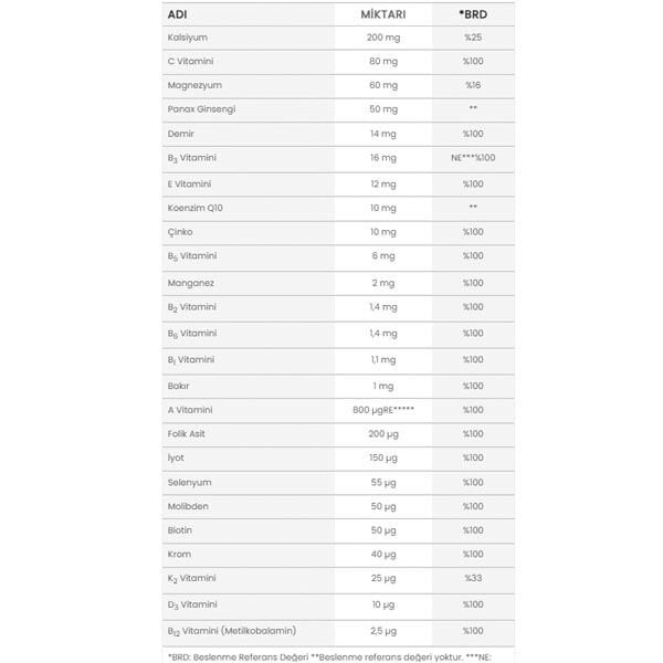 Kullanım Önerisi: Günde 1 tablet tüketilmesi önerilir.