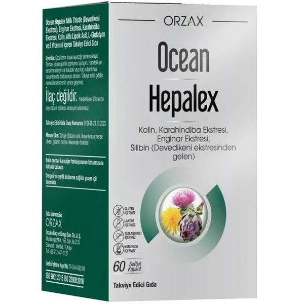 Ocean Hepalex; milk thistle (devedikeni ekstresi), enginar ekstresi, karahindiba ekstresi, kolin, alfa lipoik asit, l-glutatyon ve E vitamini içeren bir gıda takviyesidir.