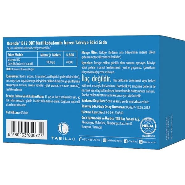 Osende vitamin b12 hakkında bilgili ve donanımlı çağrı merkezi kadromuzdan da 444 4 996 numarasından bize ulaşarak, detaylı bilgi alabilirsiniz. Ayrıca firmamız “Satış Sonrası Müşterilerimizin Her Zaman Yanındayız.” ilkesini sadakatle benimsemiş olup, müşteri memnuniyetinin sağlanması için gerekli şartları yerine getirmekten gurur duymaktadır.