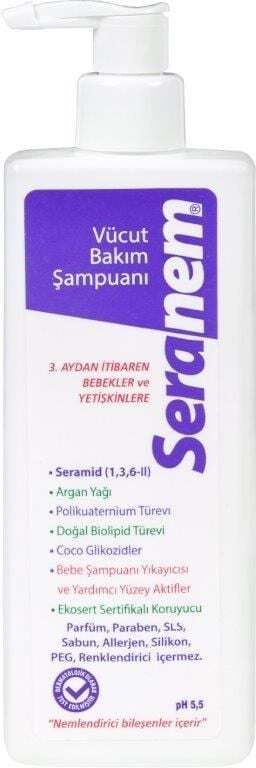 Seranem Vücut Şampuanı, cilt sağlığını destekleyen ve nemlendirici özellikler taşıyan doğal ve etkili içeriklerle formüle edilmiştir: