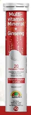 Sunlife multivitamin mineral ginseng kullanımı: Günde 1 efervesan tablet 250 ml suda (bir su bardağı su) eriterek