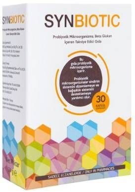 SYNBIOTIC 30 Kapsül bir takviye edici gıda olarak probiyotik mikroorganizma + Beta Glukan + 400 mg Prebiyotik bir bileşen olan İnülin içermektedir.