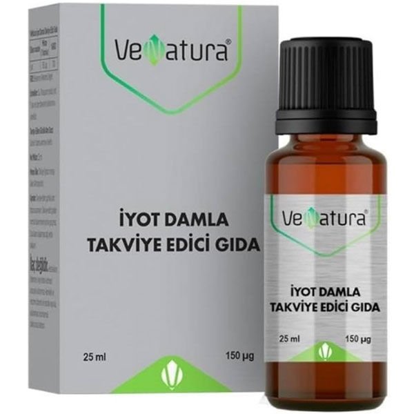 VeNatura İyot Damla 25 ml, vücudun iyot ihtiyacını karşılamak için özel olarak formüle edilmiş bir takviye edici gıdadır. İyot, vücudun metabolizmasında önemli bir rol oynayan, tiroid fonksiyonlarını destekleyen ve genel sağlık için gerekli bir mineraldir. Bu ürün, pratik damla formuyla günlük iyot alımını desteklemeye yardımcı olabilir.
