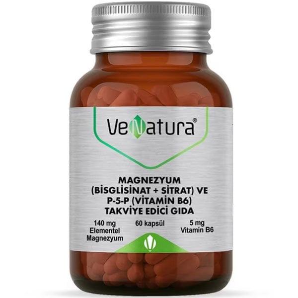 Venatura Magnezyum Bisglisinat+Sitrat ve P5P Vitamin B6 60 Kapsül