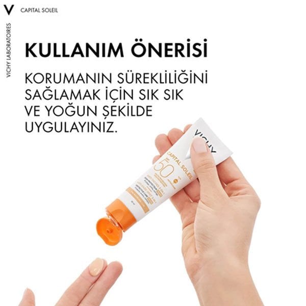 Kullanım Şekli: Güneşe maruz kalan cilitler de koruyucu bakım sunan ürün güneşe çıkmadan kısa süre önce yeterli miktarda cilt yüzeyine uygulanır.