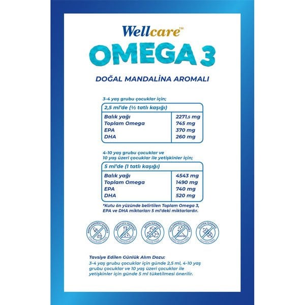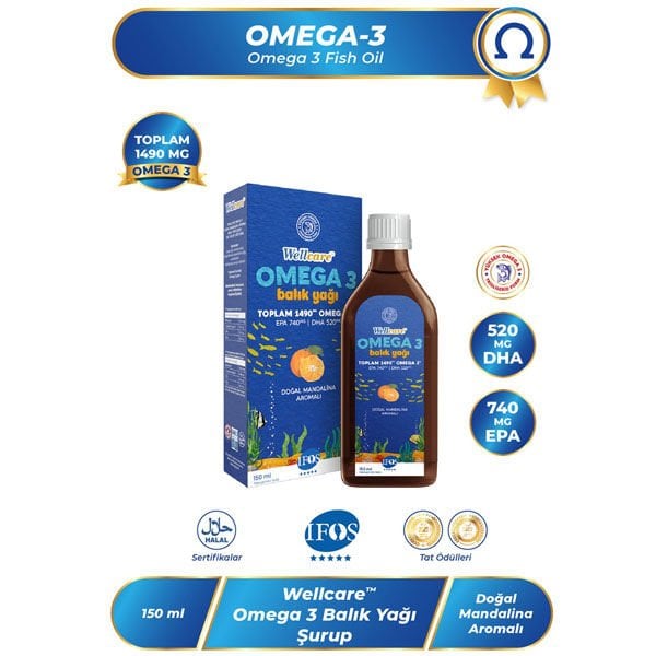 Wellcare Omega 3 Doğal Mandalina Aromalı Balık Yağı 150 ml