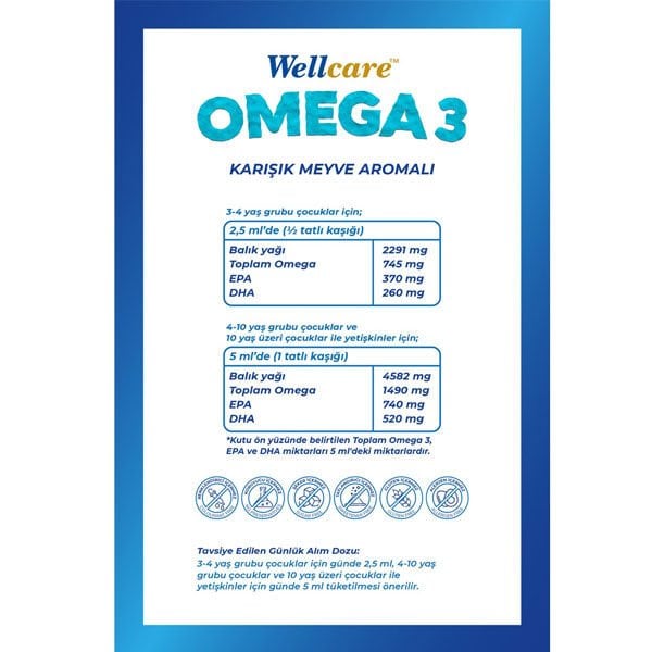 Wellcare Omega 3 Karışık Meyve Aromalı Balık Yağı 150 ml